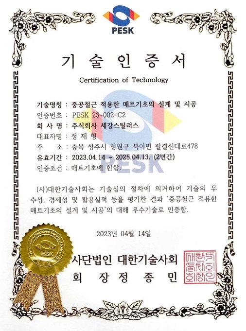 STC800 중공철근 인증현황